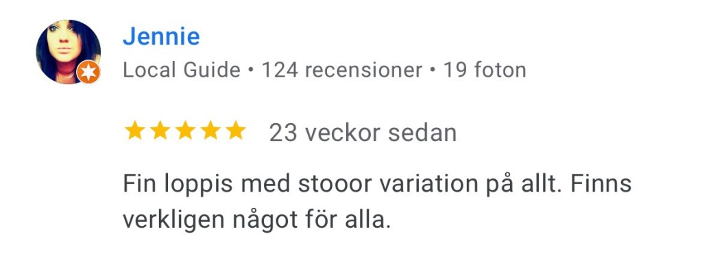 Blev så positivt överraskad! Jättebra ordning, fina grejer och det bästa av allt BRA priser! Så som det ska vara på loppis men sällan är nuförtiden. Rekommenderas!