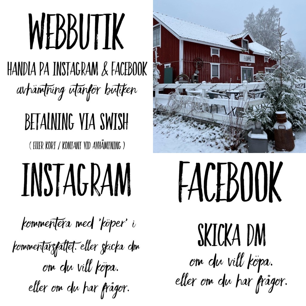Mellan dessa månader är den fysiska butiken stängd men istället kan du besöka Facebook eller Instagram då dessa konton används som webbutik.