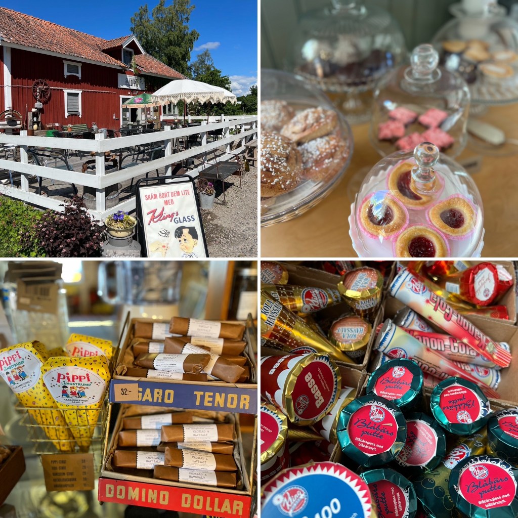 I caféet kan ni unna er lite gofika och sätta guldkant på tillvaron. Godishyllorna har fyllts på med massor av favoriter – vad sägs om klassiska Nickel från Sockerbageriet, Smålänningar från Haupt Lakrits eller kanske en klubba eller Polkagris från Grenna Polkagriskokeri?