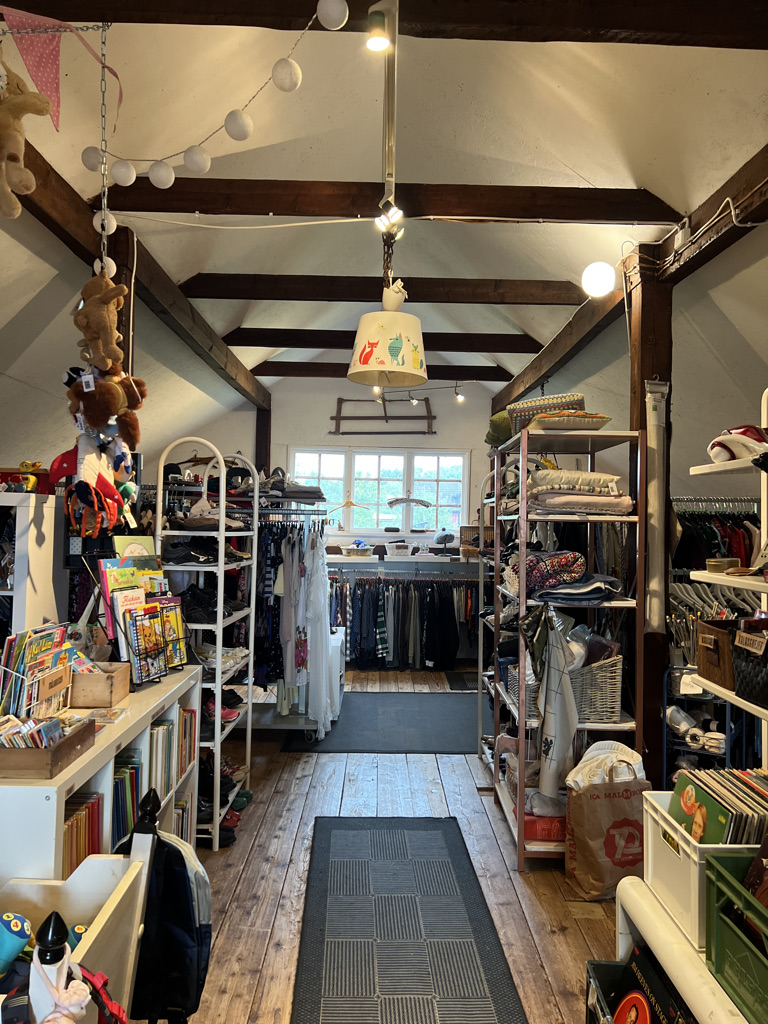 Lokalen är uppdelad så att vi alla har vår egen del, och det finns också flera gemensamma ytor: en barnavdelning, en klädavdelning och lite blandat.