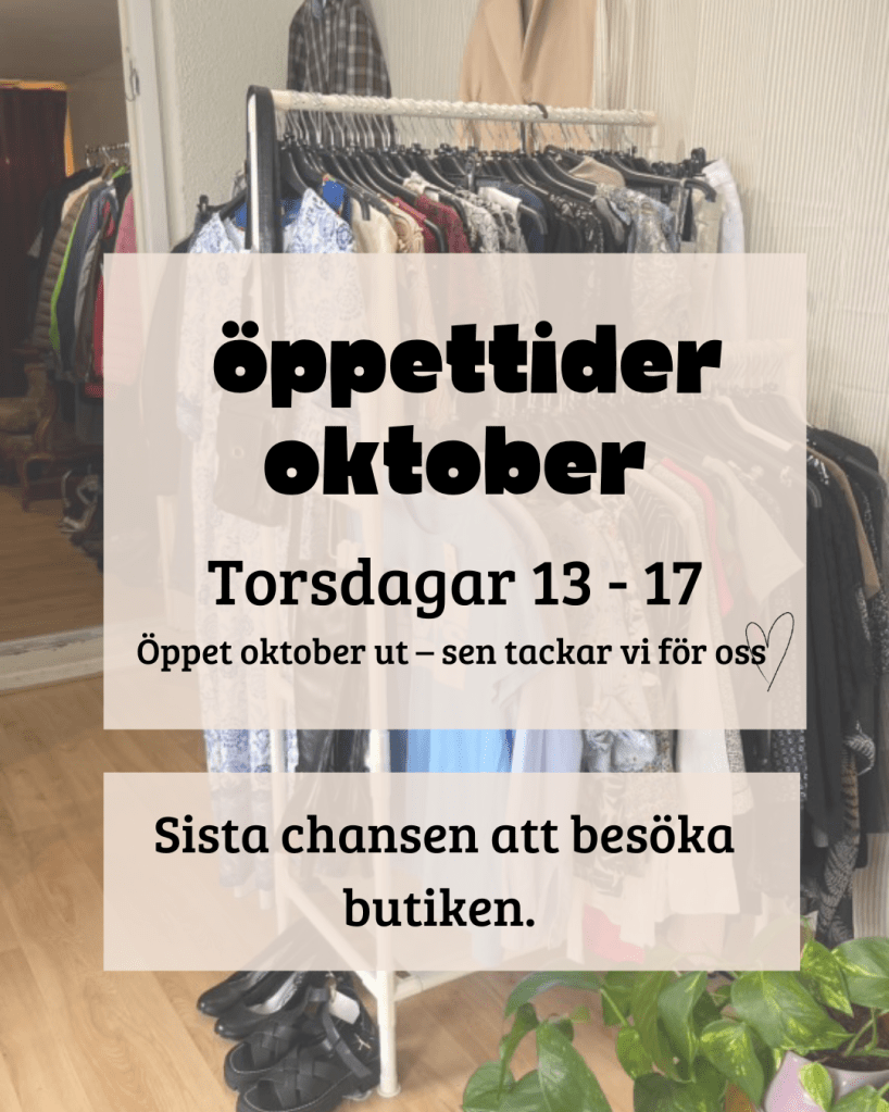 Den tråkiga nyheten är att när oktober är slut så stänger vi ner Lilla Grodans Klädkammare i Odensbacken och vi vill redan nu passa på att rikta ett stort och varmt TACK till alla kunder, besökare och inlämnare som har stöttat oss under den här tiden ♥️